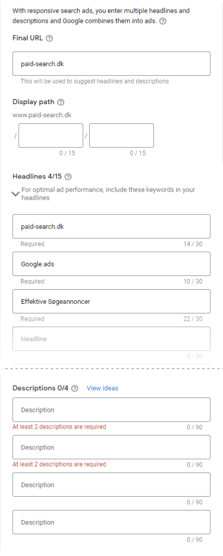 Ved at bruge Responsive Search Ads får du mulighed for, at vise dine potentielle kunder mere relevante overskrifter og beskrivelser i dine annoncer.